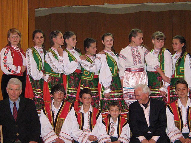 • Prezentáciu svojim kultúrnym programom obohatili členovia súboru rusínskycvh nedeľných škôl na Podkarpatsku Babičkina pesnička, ktorí sa na záver sfotografovali so sponzorom vydania encyklopédie S. Chepom (sprava) a jedným z jej zostaviteľov P. R. Magocsim.